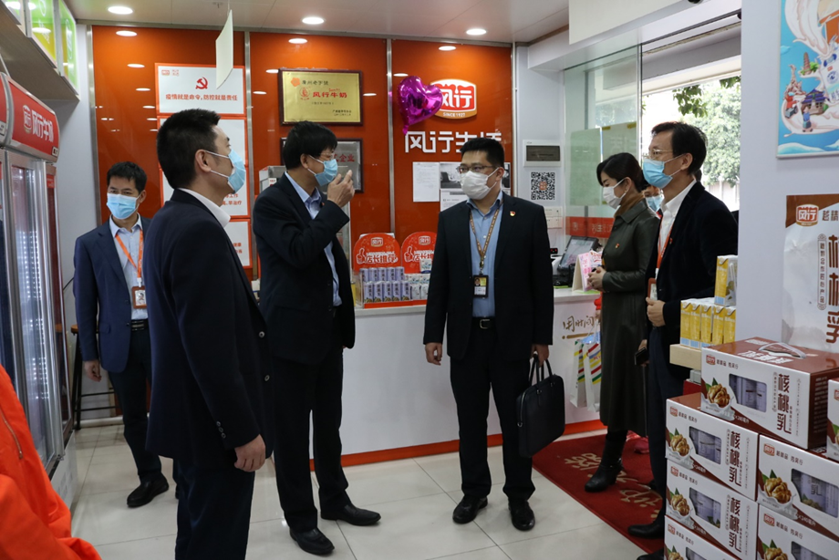 3月5日下午,ag亚娱集团党委副书记、副董事长、总经理叶珊瑚到风行乳业检查疫情防控及复工复产工作,送来企业急需的口罩等防疫用品,并看望慰问了一线员工。ag亚娱集团副总经理、风行集团临时党委书记、董事长林辉新和ag亚娱集团副总经理、风行集团临时党委副书记、副董事长、总经理韦黎明等陪同检查。